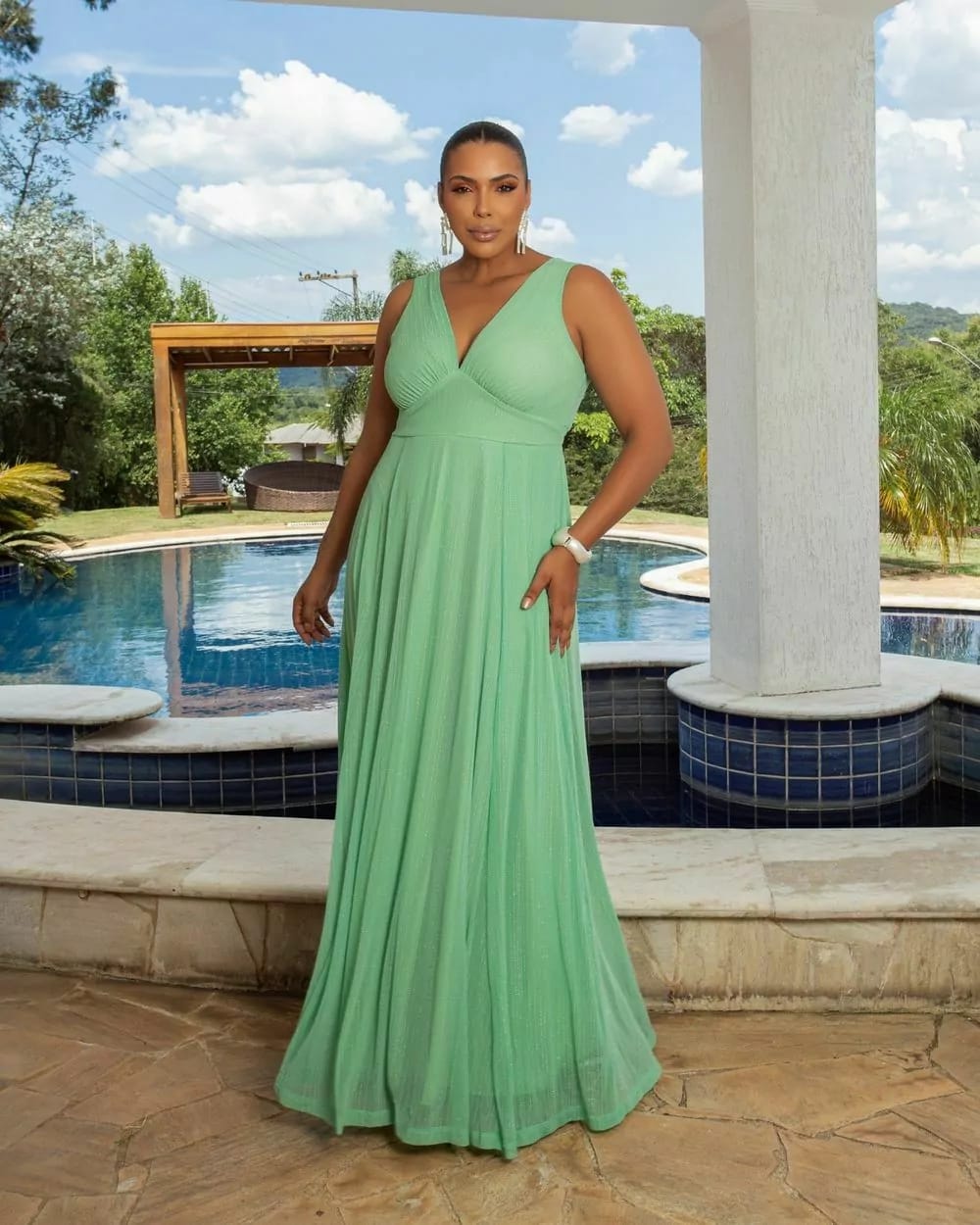 vestido longo tule verde 42